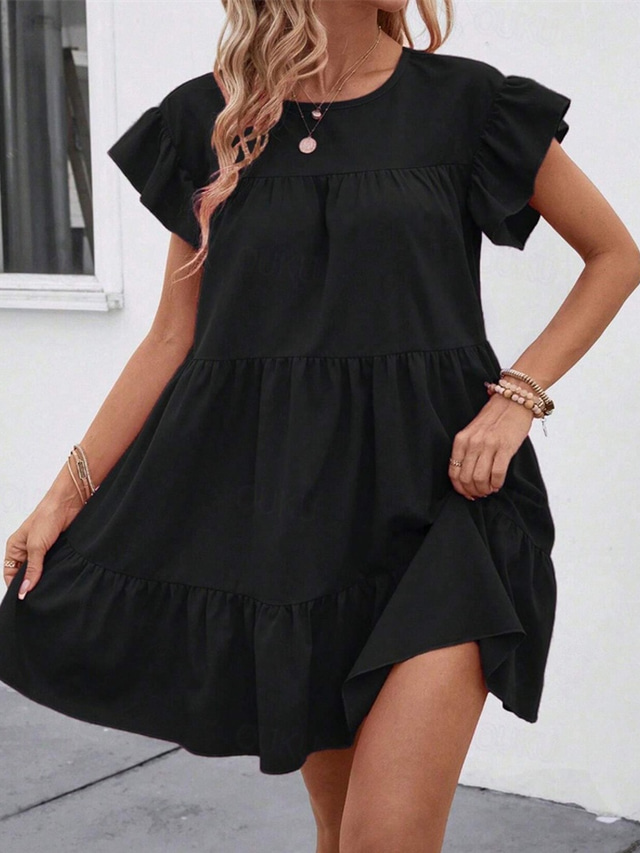 Femmes Mini Robe Robe Décontractée Robe d'été Élégant Mode Extérieur Fête Date Coupe régulière Uni Manche Courte Col ras du cou Bleu Noir Rose rouge Été Printemps