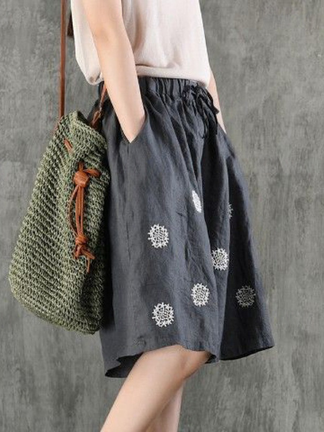 Femmes Coton mélangé Shorts Slacks Mode Streetwear Longueur Genou Naturel Fleuri Avec Poches Impression Conception à cordon élastique Confortable Extérieur Vacances Tenue quotidienne Magenta Abricot