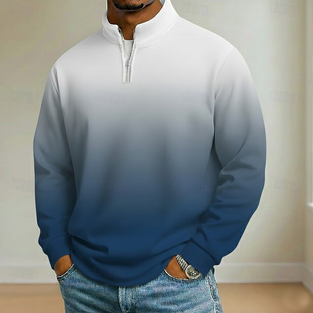 Homme Rampe de dégradé Polo manche longue Col montant Athleisure Vacances Athleisure Décontracté Quotidien Impression 3D Printemps Automne Bleu Noir Pourpre de 2026 ? US $24.99 –P1