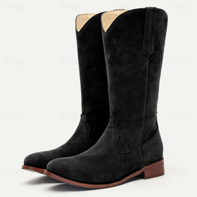 | bottes de cowboy western en daim marron pour hommes avec languettes et coutures classiques - bottes mi-mollet de style vintage | ||