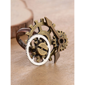 | Bague à engrenage steampunk antique et aiguilles d'horloge en alliage pour femmes de Mardi Gras - Accessoire industriel multicolore pour le carnaval et les déguisements | ||