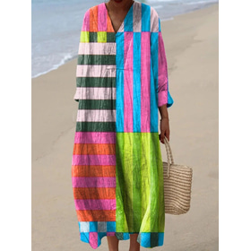 | Femmes Robe maxi Robe fourreau Robe d'Été Vacances Occasionnel Plage Sortir Coupe Ample Graphique Géométrique Rayure manche longue Col en V Bleu Rouge Blanc Ecru Noir-Blanc Été Printemps | ||