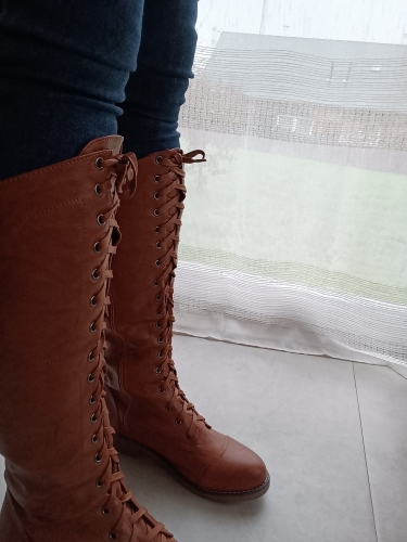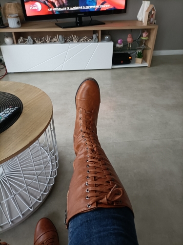 Så Chik med lange røde støvler. Jeg bruger str 39/40 men lagde mærke til at folk anbefalede, at man skulle købe en str. større end normalt, så jeg bestilte str 41… mærket klistret på støvlen sagde 42 og skrevet med kridt indeni støvlen stod der 43. Der er nu god plads til varme såler, hvilket er godt, for de er lidt tynde i materialet. Selve farven ligner plastic udenpå noget støvlestof i halvkraftig kvalitet. Jeg er superglad for begge mine par støvler. Et par røde og et par sorte. Så Chik med lange røde støvler. Jeg bruger str 39/40 men lagde mærke til at folk anbefalede, at man skulle købe en str. større end normalt, så jeg bestilte str 41… mærket klistret på støvlen sagde 42 og skrevet med kridt indeni støvlen stod der 43. Der er nu god plads til varme såler, hvilket er godt, for de er lidt tynde i materialet. Selve farven ligner plastic udenpå noget støvlestof i halvkraftig kvalitet. Jeg er superglad for begge mine par støvler. Et par røde og et par sorte.