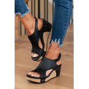 sandales compensées en liège noir pour femmes – chaussures confortables à enfiler à bout ouvert avec détails rivetés pour une tenue décontractée d'été et d'extérieur |