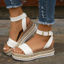 Sandales à plateforme espadrilles blanches pour femmes, avec bride à la cheville et détails cloutés, pour tenues d'été et décontractées |