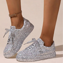 Femmes Basket Bling Bling Chaussures fantaisie Chaussures Scintillantes Extérieur Quotidien Paillettes Talon plat Bout Rond Mode Sportif Occasionnel Paillette PU À lacets Argent Noir |