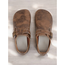 mocassins à enfiler pieds nus marron vintage pour femmes avec bride à boucle et finition en similicuir vieilli, parfaits pour une tenue décontractée