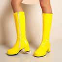 bottes à plateforme hautes en cuir verni blanc pour femmes avec fermeture éclair latérale - bottes à talons épais de style disco vintage des années 70 pour le cosplay, la mode rétro et les événements