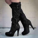 bottines à plateforme noires pour femmes - talon haut avec fermeture éclair et boucle décorative, parfaites pour les fêtes, les sorties nocturnes et les looks tendance d'automne/hiver