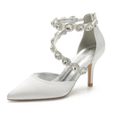 Femmes Chaussures de Mariage Chaussures de Mariée Boucle Talons Chaton Bout ouvert Minimalisme Satin Lanière de cheville Noir Blanche Ivoire