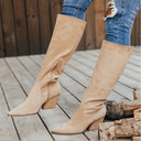 bottes western hautes en daim taupe pour femmes avec talon bloc, bottes élégantes à bout pointu pour une tenue décontractée et extérieure