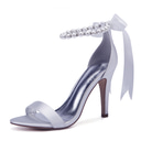Escarpins à bout ouvert en satin pour femmes avec bride à la cheville en perles – chaussures de mariage champagne élégantes pour mariées et demoiselles d'honneur |