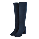 bottes hautes bleu marine pour femmes avec talons épais - élégantes et polyvalentes pour la mode hivernale, parfaites pour un usage quotidien et des occasions spéciales |