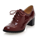 Chaussures richelieu en cuir verni bleu marine pour femme – Chaussures habillées à lacets et talon épais pour le bureau, le style vintage et les occasions formelles |