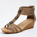 sandales compensées bohèmes pour femmes – chaussures d'été à bout ouvert avec accents perlés et sangle réglable pour une tenue décontractée et de plage |