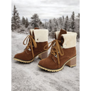 bottines à lacets en daim rouge pour femmes avec col en fausse fourrure et talon bloc – bottes d'hiver chaudes et élégantes pour l'extérieur |
