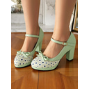Femme Chaussures de mariage Sandales Soirée Imitation Perle Talon Bottier Bout rond Elégant Cuir microbien Lanière de cheville Blanche |