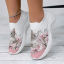 baskets à fleurs adorables pour femmes - chaussures à enfiler décontractées et respirantes avec un joli imprimé chat, parfaites pour le confort et le style au quotidien |