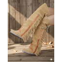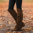 bottes hautes en daim marron à franges pour femmes avec sangles à boucle - style western pour les festivals, les sorties décontractées et les aventures en plein air |
