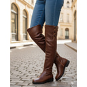 bottes d'équitation marron pour femmes jusqu'aux genoux avec lacets latéraux - bottes hautes élégantes et décontractées pour l'automne |
