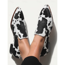 Loafers en cuir synthétique à motif de peau de vache pour femmes – Chaussures plates noires et blanches élégantes pour le décontracté et le bureau |