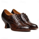 chaussures oxford à talons à lacets en similicuir marron vintage Gatsby pour femmes - style victorien rétro pour une tenue formelle et décontractée |