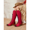 bottes de cowboy western à lacets rouges vintage - bottes en cuir montantes pour femmes pour les événements country et western |
