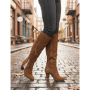 bottes de cowboy en daim pour femmes jusqu'aux genoux - bottes souples à bout pointu de style occidental avec talon épais pour la mode automne et hiver |