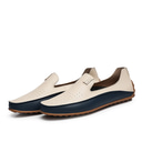mocassins à enfiler en cuir blanc pour hommes avec coutures détaillées, semelle antidérapante confortable et design respirant | chaussures de conduite décontractées |