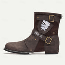 bottes de moto steampunk pour hommes avec sangles à double boucle et motif lion en relief - bottines en similicuir marron |