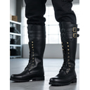 bottes hautes noires à lacets pour hommes avec sangles à boucle – bottes de combat militaires de style vintage pour l'extérieur et les vêtements décontractés |