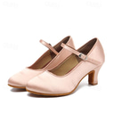 chaussures de danse de salon en satin rose pour femmes – talons latins Mary Jane avec semelle en daim pour la performance et la pratique |