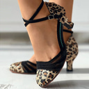 chaussures de danse léopard pour femmes avec brides en maille – semelle en caoutchouc, confortables et élégantes pour la danse de salon et la danse latine |