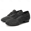 chaussures de danse jazz en tricot pailleté noir pour femmes avec design à lacets et semelle en daim - chaussures de performance légères et respirantes pour la danse de salon et la danse latine |