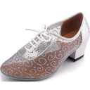 chaussures de danse à paillettes argentées pour femmes avec talons bas et brides à la cheville – parfaites pour les événements de salon, latins et de fête |