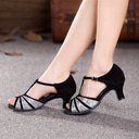 Femmes Chaussures de Danse de Salon Chaussures de danse moderne Chaussures de salsa Danse en Ligne Talon Épissage Talon cubain Boucle Lanière en T Noir |