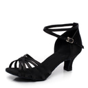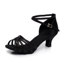 chaussures de danse latine en satin pour femmes avec design à lanières et talons chaton - sandales de danse de salon pour la salsa, le tango et la rumba |