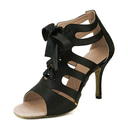 Sandales de danse latine noires à lacets pour femmes avec semelle en daim souple – Chaussures de danse de salon à talons hauts et bout ouvert pour la salsa, le tango et les fêtes |