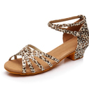 Femme Chaussures Latines Salon Chaussures de Salsa Danse en ligne Intérieur Entraînement Professionnel Satin Basique Sandale Talon Talon Bas Boucle Enfant Léopard Nu Noir |