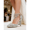Escarpins de mariée de luxe en cristal – chaussures de mariage scintillantes en strass avec pompon à chaînette pour une cérémonie glamour en salle de bal et de prestige |