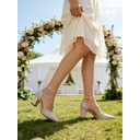 | Ces chaussures en satin ivoire sont superbes ! Très originales et confortables, avec notamment les lanières croisées au-dessus du pied. Quant au strass posé à larrière des chaussures, il ajoute une touche de fête absolument incomparable... Je recommande vivement ce modèle !!! | |
