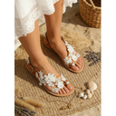 sandales de mariée en dentelle florale blanche pour femmes – sandales de mariage plates faites à la main pour les mariages de plage et bohèmes |