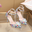 Sandales à talons hauts en strass violet pour femmes – élégantes chaussures de soirée de mariage avec bride à la cheville en cristal |