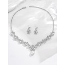 ensemble élégant de collier et de boucles d'oreilles en cristal pour femmes – motif scintillant en forme de larme et de feuille pour les mariages et les événements officiels |