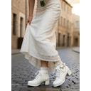 bottines de mariée blanches pour femmes – chaussures de mariage à lacets avec décoration en cœur et perles, talon épais pour les mariées d'inspiration vintage |