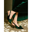 Escarpins à bride arrière en velours bleu pour femmes avec bout pointu et nœud – talons hauts élégants pour événements formels et fêtes |