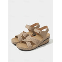 Sandales compensées beiges pour femmes avec bride auto-agrippante et design découpé, chaussures à bout ouvert confortables pour la marche, les voyages d'été et les tenues décontractées au quotidien |