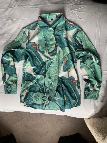 This a beautiful shirt with a beautiful print that is subtle and elegant. It feels great on and looks terrific! This a beautiful shirt with a beautiful print that is subtle and elegant. It feels great on and looks terrific!