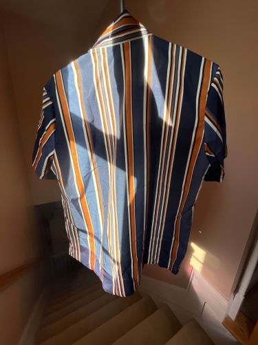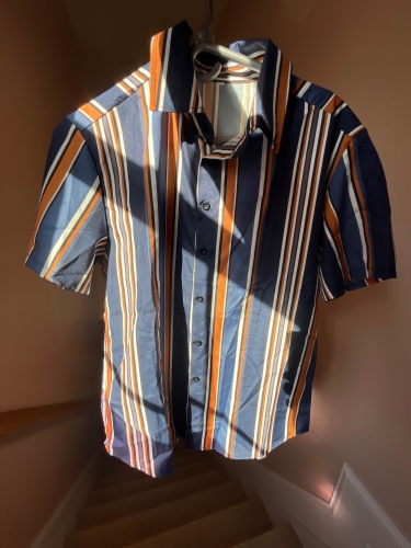 The shirt is stylish and I like the way they used white, orange and different shades of blue.