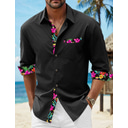 Homme Chemise Chemise en lin Chemise d'été Tenue de plage Chemise Boutonnée Fleuri Vacances Croisière Noir Blanche Rose Claire Bleu manche longue Revers Printemps & Automne Vêtement Tenue Épissure
